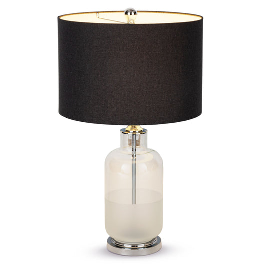 27" Clear Glass LED Table Lamp With Gray Drum Shade