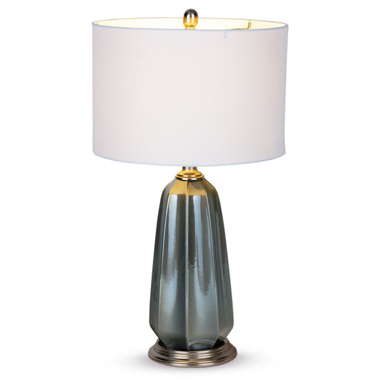28" Blue Gray Ceramic LED Table Lamp With White Drum Shade