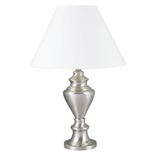 28" Nickel Metal Table Lamp With White Empire Shade