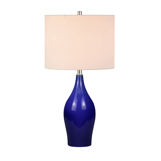 28" Navy Blue Porcelain Table Lamp With White Drum Shade