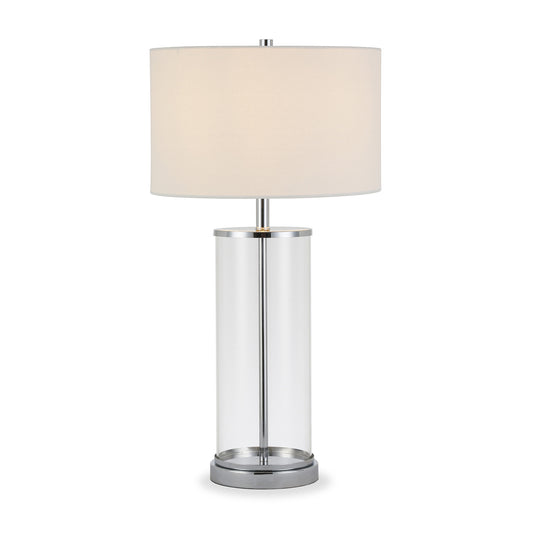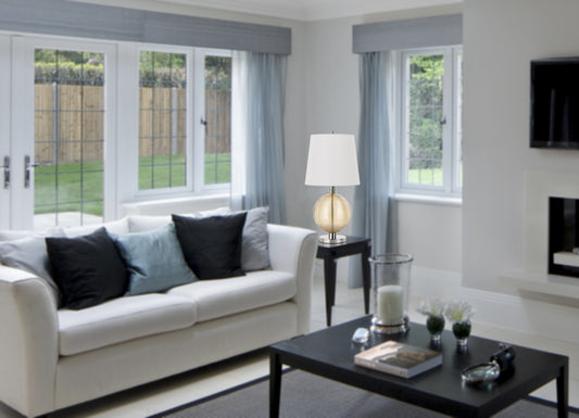 28" Nickel Glass Table Lamp With White Drum Shade