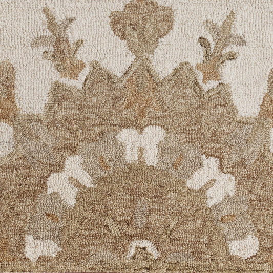 2’ X 8’ Beige And Brown Floral Block Pattern Runner Rug