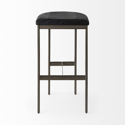 30" Black Faux Leather and Black Metal Swivel Bar Stool