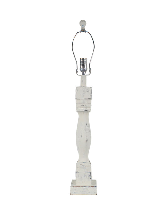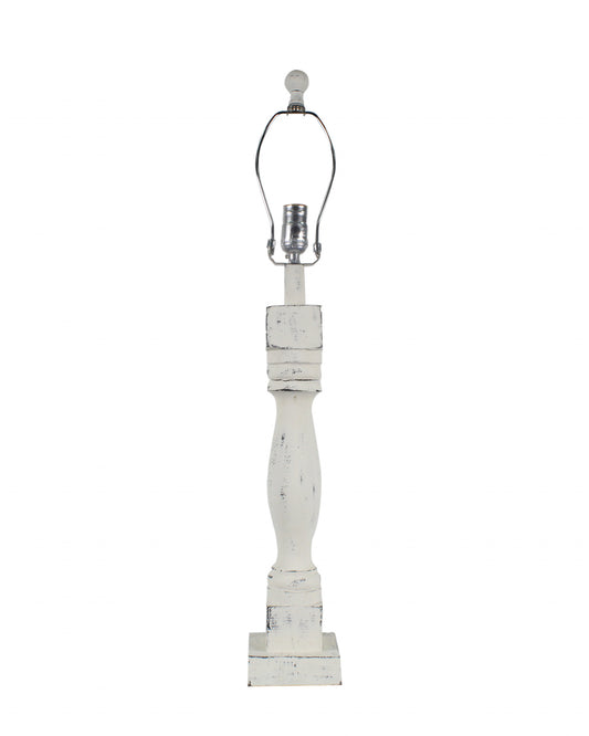 30" Distressed White Table Lamp With White And Tropical Fish Empire Shade