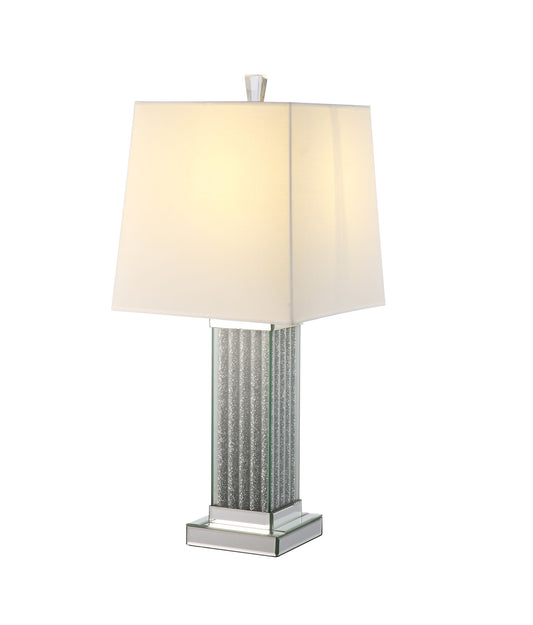 30" Mirrored Glass and Faux Crystal Geo Table Lamp With White Square Shade