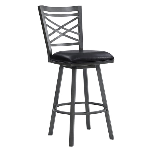 30" Transitional Black Faux Leather Metal Cross Back Bar Stool