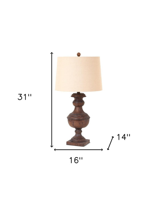 31" Distressed Brown Table Lamp With Tan Empire Shade