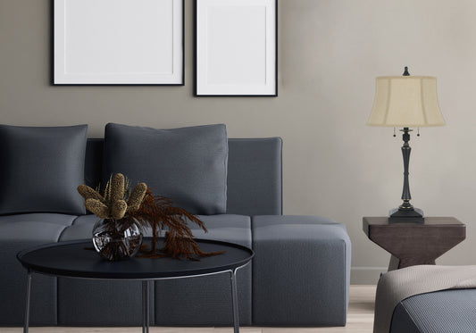 31" Bronze Metal Two Light Table Lamp With Beige Empire Shade