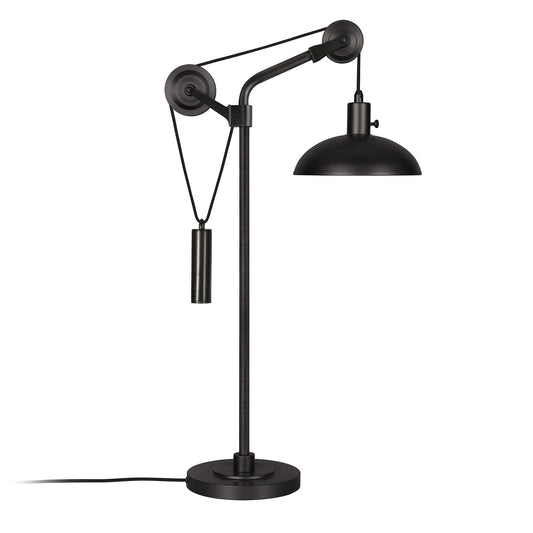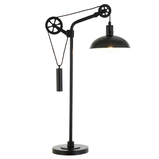 33" Black Metal Desk Table Lamp With Black Bowl Shade