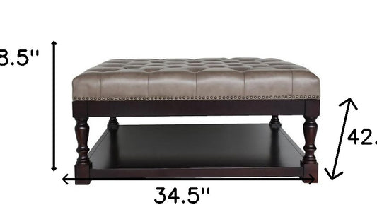 34.5" Dark Grey and Dark Brown Tufted Leather Coffee Table