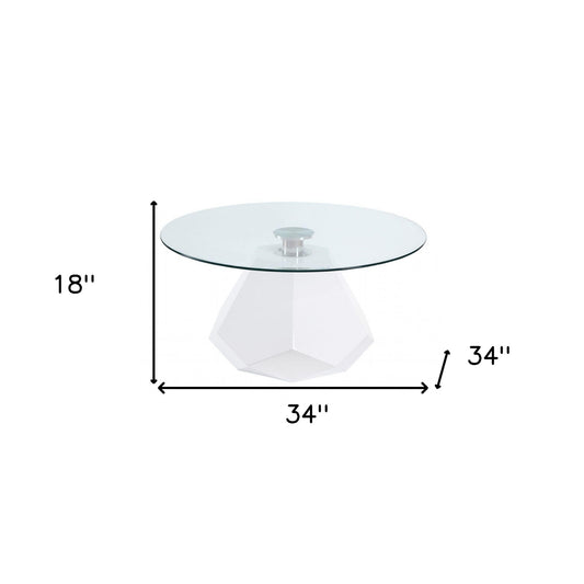 34" White And Clear Glass And Manufactured Wood Round Coffee Table