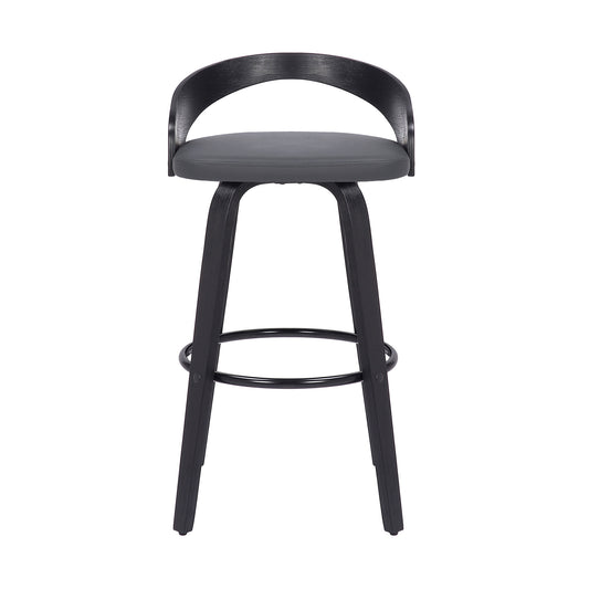 35" Gray Faux Leather And Manufactured Wood Swivel Counter Height Bar Chair