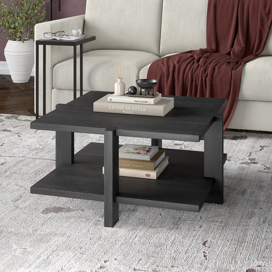 35" Gold And White Manufactured Wood And Metal Square Coffee Table