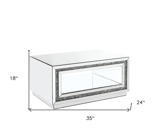35" Silver Glass Mirrored Coffee Table With Shelf