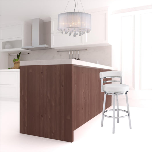 35" White And Silver Faux Leather And Iron Swivel Low Back Counter Height Bar Chair With Footrest