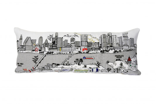 35" White Houston Daylight Skyline Lumbar Decorative Pillow