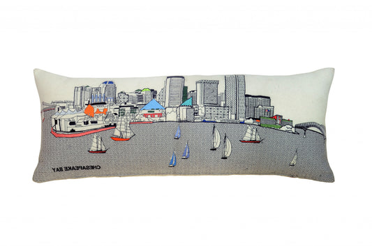 35" White Baltimore Daylight Skyline Lumbar Decorative Pillow