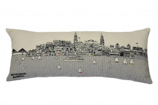 35" White Charleston Daylight Skyline Lumbar Decorative Pillow