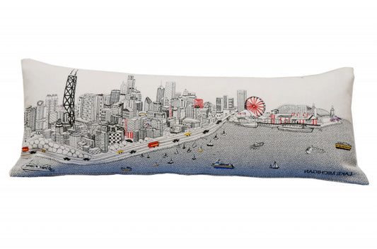35" White Chicago Daylight Skyline Lumbar Decorative Pillow