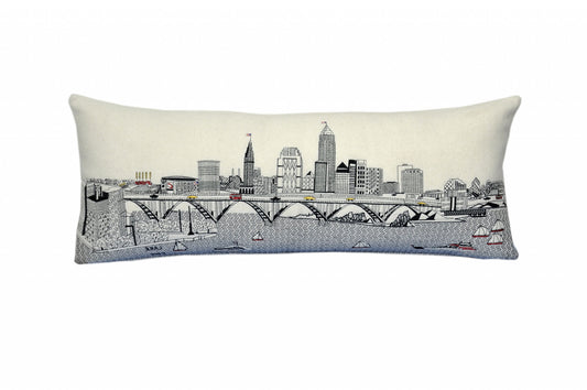 35" White Cleveland Daylight Skyline Lumbar Decorative Pillow