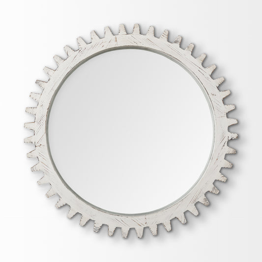 35.5" Round Whitewashed Wood Frame Wall Mirror