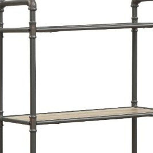 36" Antique Oak and Sandy Gray Metal Three Tier Standard Bookcase