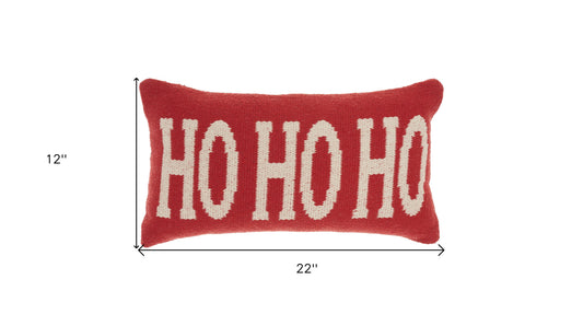 12" X 22" Red Zippered Handmade Polyester Christmas Throw Pillow