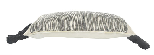 12" X 28" Ivory And Black 100% Cotton Striped Zippered Pillow