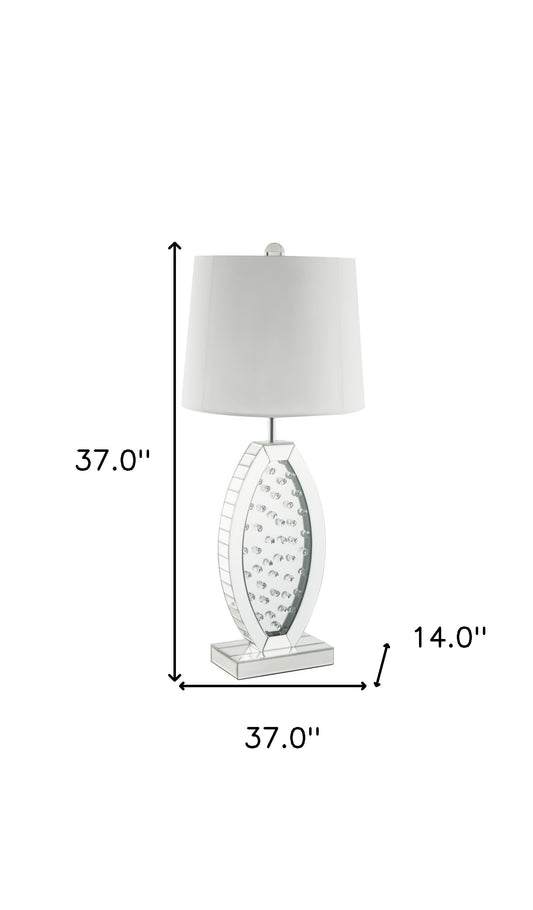 37" Mirrored Glass Table Lamp With White Drum Shade