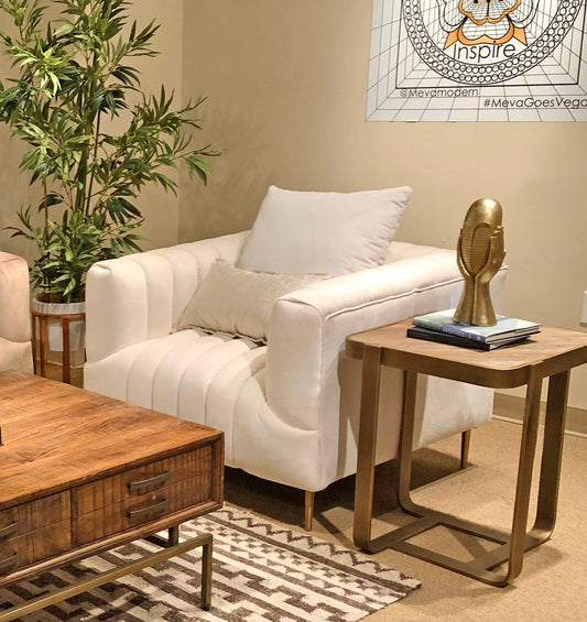 37" Ivory Velvet And Gold Solid Color Lounge Chair