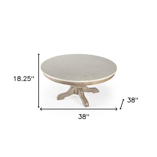 38" Beige And Off White Genuine Marble Round Distressed Coffee Table