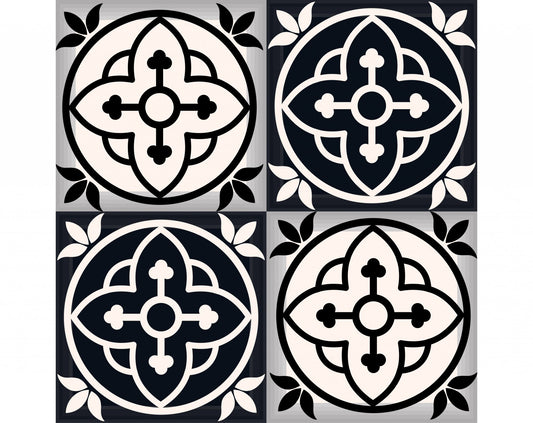 4" X 4" Black and White Rosa Peel and Stick Removable Tiles