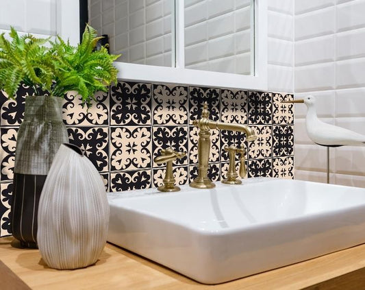 4" X 4" White And Black Sun Peel And Stick Removable Tiles