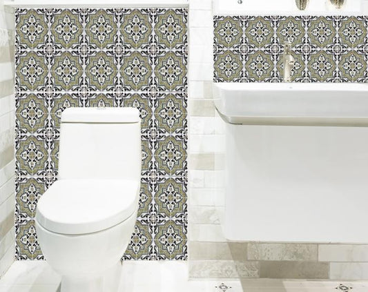 4" X 4" Vintage Cran and Green Peel and Stick Removable Tiles