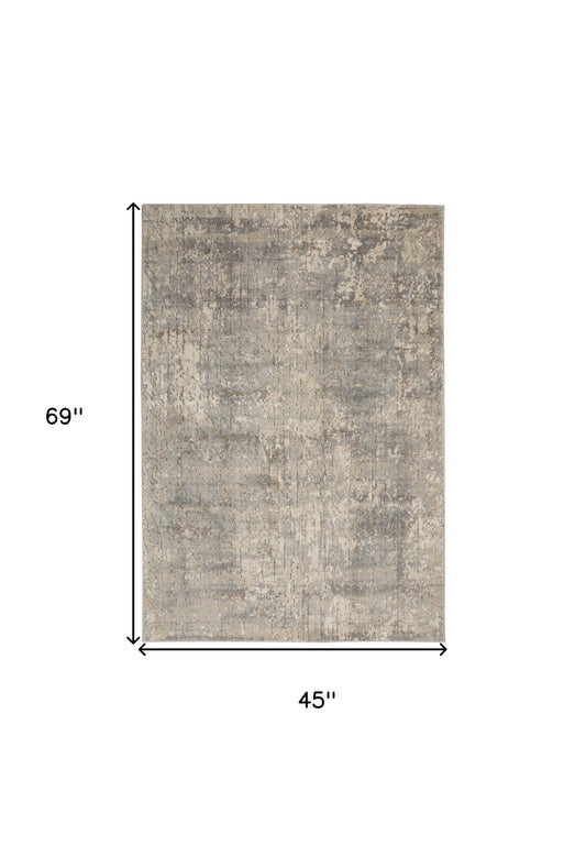 4' X 6' Beige And Grey Abstract Power Loom Non Skid Area Rug