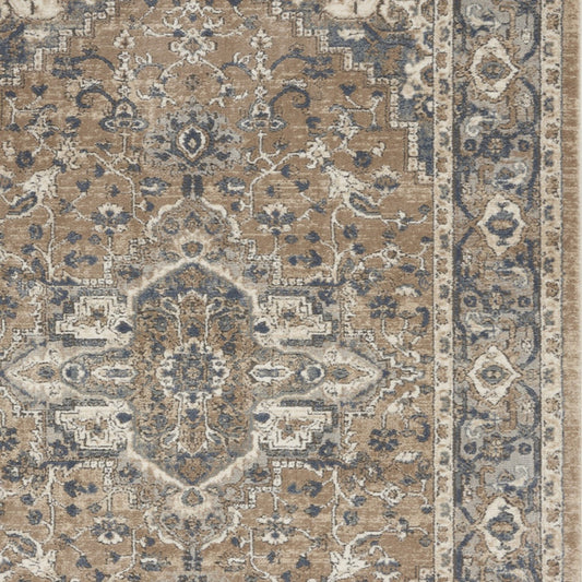 4' X 6' Beige Gold Blue And Grey Oriental Power Loom Stain Resistant Area Rug