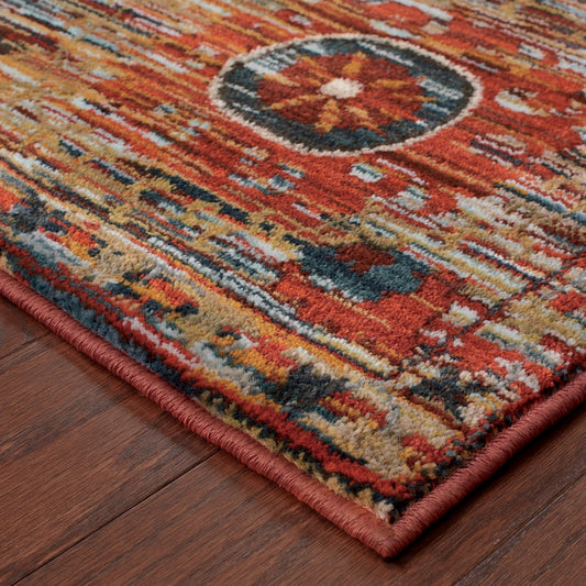 4' X 6' Red Gold Orange Green Ivory Rust And Blue Oriental Power Loom Stain Resistant Area Rug