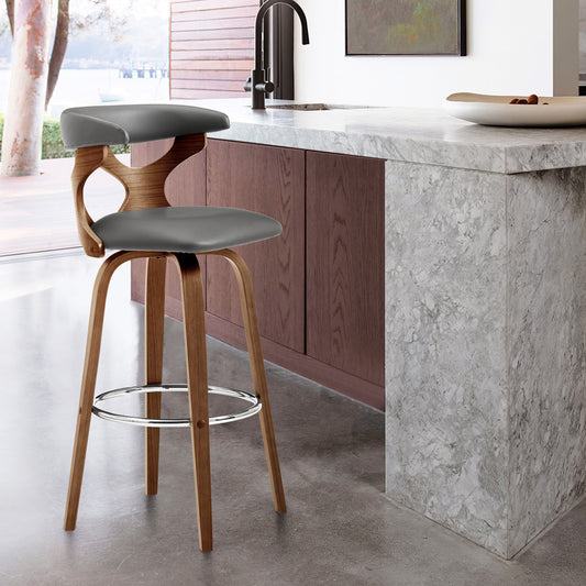 40" Gray Faux Leather And Manufactured Wood Swivel Bar Height Chair