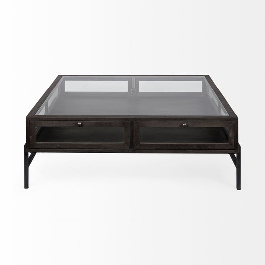 42" Black And Gray Coffee Table With Drawer And Two Shelves
