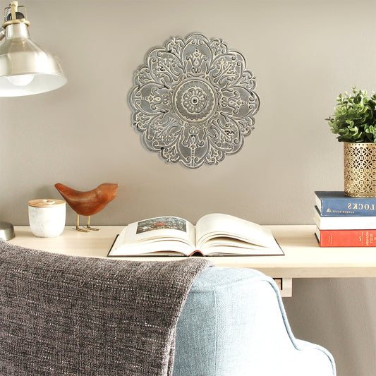 13" Teal Blue Medallion Distressed Metal Wall Decor