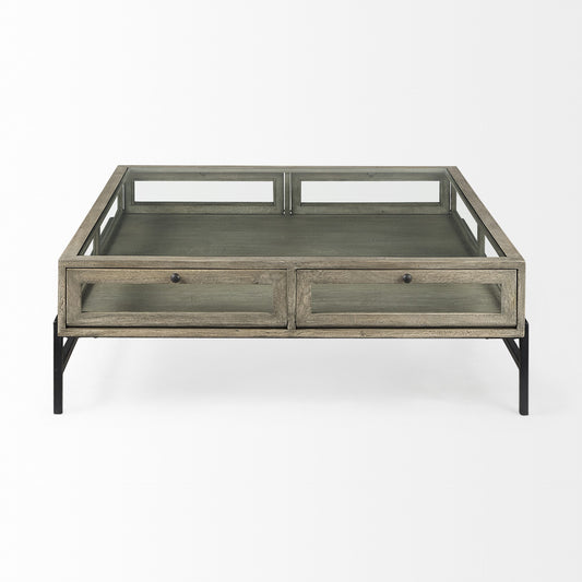 42" Gray And Black Glass And Metal Square Coffee Table With Shelf