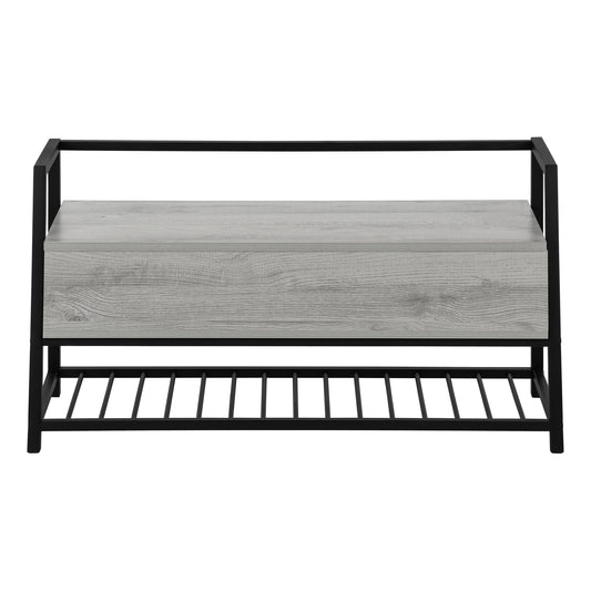 42" Gray and Clear Upholstered Faux Fur Bench with Flip top