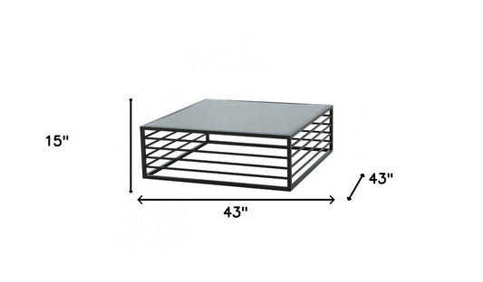 43" Black Glass And Steel Square Coffee Table With Two Shelves