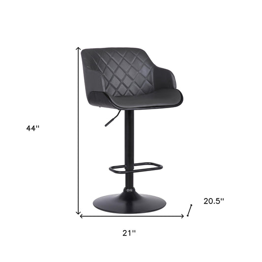 44" Gray Faux Leather And Iron Swivel Adjustable Height Bar Chair