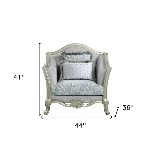 44" Gray And Platinum Velvet Floral Tufted Club Chair
