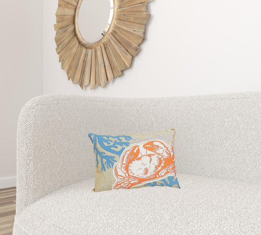 13" X 18" Blue and Orange Crab Coastal Polyester Pillow With Applique