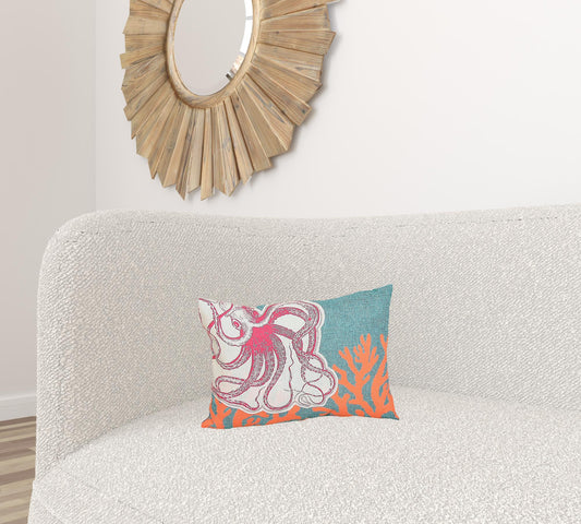 13" X 18" Red Orange Octopus Coastal Polyester Pillow With Applique