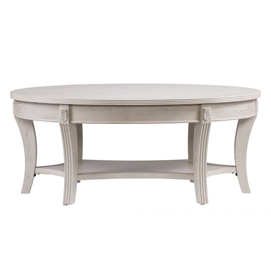 44" White Manufactured Wood And Metal Oval Coffee Table