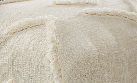 47" Cream Textural Boho Stripe Black Leg Upholstered Bench