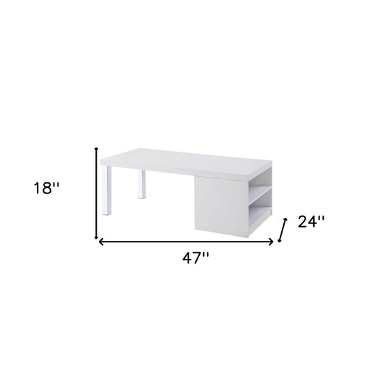 47" Chrome And White High Gloss Manufactured Wood And Metal Rectangular Coffee Table With Shelf